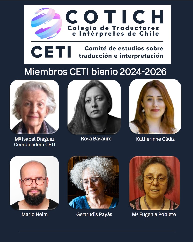 El Comité de Estudios sobre Traducción e Interpretación (Ceti) de Cotich fue creado en julio de 2024. Sus objetivos son: impulsar estudios sobre el ámbito profesional de la traducción y de la interpretación en Chile que sean de interés para nuestros socios y para el rubro a nivel nacional e internacional; organizar actividades de difusión de sus resultados, entre otros, cursos y talleres de perfeccionamiento y actualización, congresos, conversatorios y conferencias; difundir investigaciones y estudios sobre el ámbito profesional de la traducción e interpretación que se realicen en Chile y el extranjero; y colaborar con asociaciones gremiales regionales y mundiales en estudios conjuntos.